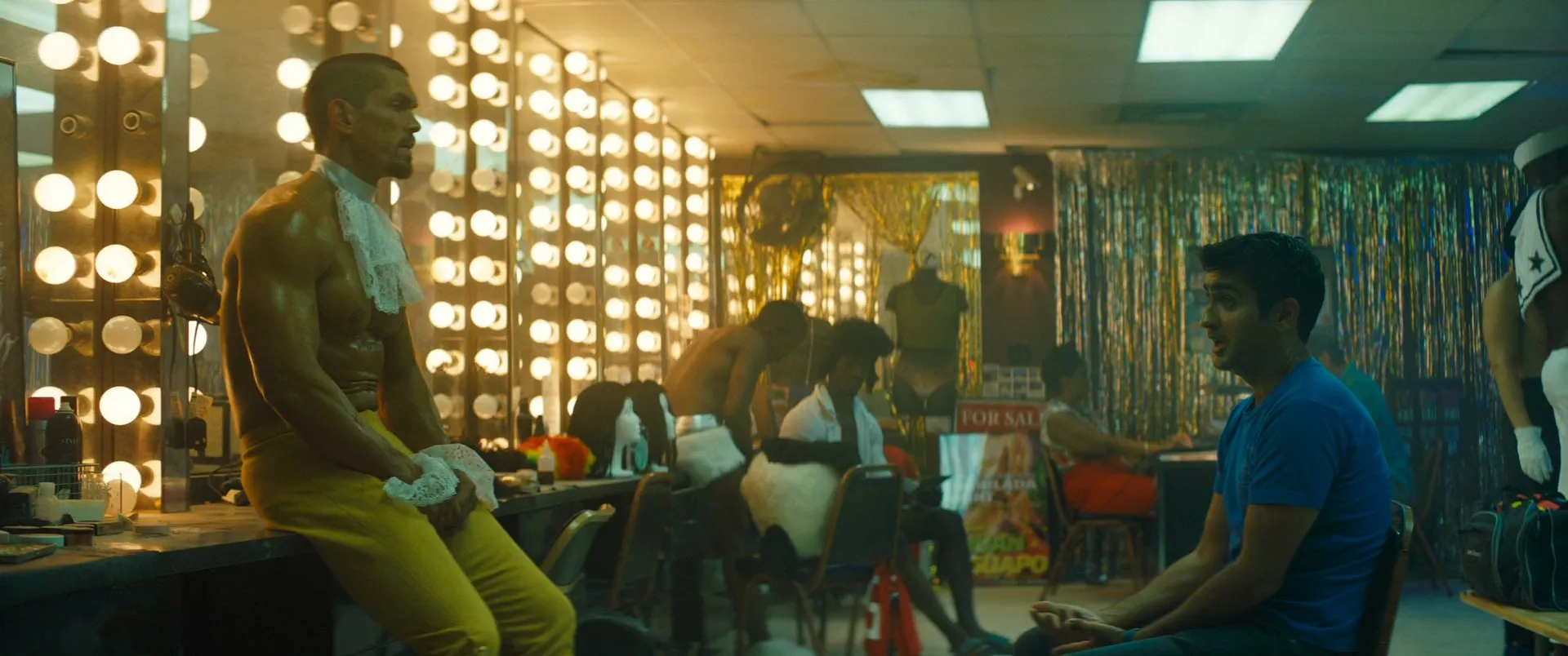 Cast: Dave Bautista as Vic, Kumail Nanjiani as Stu, Mira Sorvino as Angie McHenry, Natalie Morales as Nicole, Iko Uwais as Teijo, Betty Gilpin as Becca, Karen Gillan as Morris, Jimmy Tatro as Richie Sandusky, Steve Howey as Felix, Rene Moran as Amo Cortez, Amin Joseph as Leon, Christine Horn as Upscale Hotel Manager, Trevor Shand as Disc Jockey, Jared Logan as Complicated Directions Guy, Kyle Zingler as Drunk Jerk, Halleta Alemu as Hot Sorority Girl, Melody Peng as Hot Sorority Girl, Sean Oey as Science Project Boy, Robert Harvey as Snoring Old Man, Noah Benjamin as Distraught Man, Jennifer L. Marshall as Dog Owner, Roger Payano as Eye Doctor, Patricia French as Grandmother, Victoria Anastasi as USC Student, Julia Vasi as USC Student, Bruno Rose as Bartender, Amber Chardae Robinson as Amber, Fernando Martinez as Alamitos Gangbanger, Mike Endoso as Alamitos Gangbanger, Scott Lawrence as Dr. Branch, Joshua Mikel as Ponytail Goon, Apollo GT as Male Stripper, James William Ballard as Clippers Fan / Shooter, Darin Ferraro as Drug Dealer, Jennifer Riker as Art Collector, Jason-Jamal Ligon as Gallery Patron, Vince Pisani as Gallery Patron, Pete Dondero as Sriracha Night Shifter, Si Chen as Sriracha Night Shifter, Malachi Jr. as Uber Driver Tariq, Daniel Suárez as SUV Uber Driver, Austin Dillon as SUV Uber Driver, Ty Dillon as SUV Uber Driver, Roscoe Johnson as LAPD Beat Cop, Stroker as Pico, William DeAtley as Josh (uncredited), Rick Shuster as Helicopter Pilot (uncredited), Sam Medina as Goon (uncredited)