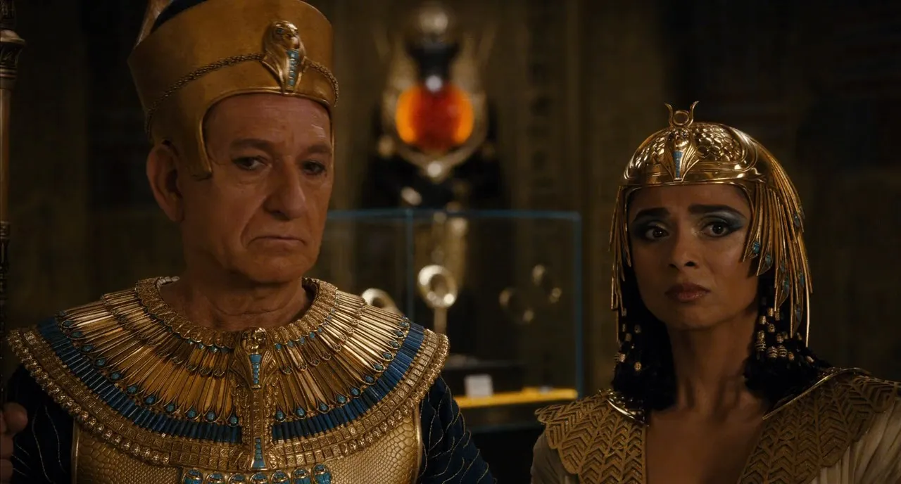Cast: Ben Stiller as Larry Daley / Laaa, Robin Williams as Theodore Roosevelt, Owen Wilson as Jedediah Smith, Steve Coogan as Octavius, Ricky Gervais as Dr. McPhee, Dan Stevens as Sir Lancelot, Rebel Wilson as Tilly, Skyler Gisondo as Nick Daley, Rami Malek as Ahkmenrah, Patrick Gallagher as Attila the Hun, Mizuo Peck as Sacajawea, Ben Kingsley as Merenkahre, Dick Van Dyke as Cecil, Mickey Rooney as Gus, Bill Cobbs as Reginald, Andrea Martin as Rose, Rachael Harris as Madeline Phelps, Matt Frewer as Archibald Stanley, Brad Garrett as Easter Island Head (voice), Regina Taufen as New York Reporter (voice), Percy Hynes White as C.J. Fredericks, Brennan Elliott as Robert Fredericks, Kerry van der Griend as Neanderthal #1, Matthew Harrison as Neanderthal #2, Jody Racicot as Neanderthal #3, Randy Lee as Hun #1, Darryl Quon as Hun #2, Paul Chih-Ping Cheng as Hun #3, Gerald Wong as Hun #4, Anjali Jay as Shepseheret, Matty Finochio as Roman Sentry, Patrick Sabongui as Amir, Amir M. Korangy as 1938 Egyptian Worker, Louriza Tronco as Andrea, Sophie Levy as Sophie, Jin Sangha as Egyptian High Priest, James Neate as Augustus Statue, Alice Eve as Alice Eve (uncredited), Hugh Jackman as Hugh Jackman (uncredited), Kishore Bhatt as Theatre Patron (uncredited), Dmitrious Bistrevsky as Greek Statue (uncredited), Hannah Blamires as Theatre Patron (uncredited), Jill Buchanan as Passerby (uncredited), Arpit Chaudhary as Theatre Patron (uncredited), Michael Denis as Young Ahkmenrah's Father (uncredited), Theo Devaney as Lord Nelson (uncredited), John Dryden as Mummy (uncredited), Jordan Gardiner as Wealthy Donor (uncredited), Ian Hawes as Gala Photographer (uncredited), Nils Hognestad as Cowboy (uncredited), Tony Honickberg as Theatre Patron (uncredited), Todor Jordanov as Museum Guard (uncredited), Zivile Kaminskaite as Gala Event Wealthy Donor (uncredited), Shaun Lucas as Museum Patron / Passerby (uncredited), Sid Man as Passerby (uncredited), Craig March as NY Cop (uncredited), Stuart Matthews as Theatre Patron (uncredited), Martyn Mayger as Action Car Driver (uncredited), Doris McCarthy as Wealthy Donor (uncredited), Pete Meads as Passerby (uncredited), Leah Perkins as BMW Driver (uncredited), Jacqueline Ryan as Wealthy Donor (uncredited), Andrea Sandell as Passerby (uncredited), Steve Saunders as Passerby (uncredited), Bomber Hurley-Smith as Roman Sentry (uncredited), Celeste White Steele as Theater Attendee (uncredited), Ella Stiller as Child on London Bus (uncredited), Quinn Dempsey Stiller as Child on London Bus (uncredited), Winson Ting as Man (uncredited), Stefano Villabona as Gala Photographer (uncredited), Seth Whittaker as Museum Guard (uncredited), Buppha Witt as Passerby (uncredited), Brian Woodward as Theatre Patron (uncredited), Crystal the Monkey as Dexter